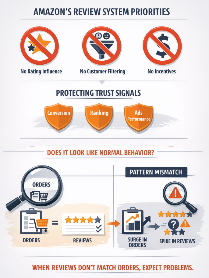 In practice, Amazon is protecting trust signals. Reviews and star ratings influence conversion, ranking, and advertising performance. Because they are so influential, Amazon treats them as infrastructure.