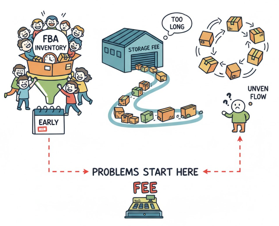 They start when inventory enters FBA too early, stays too long, or moves unevenly.